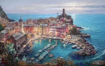 Download Colorful Italy Vernazza Artistic Painting Art