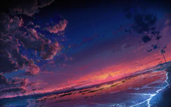 Anime Dreamscape: Serene Sunset Over the Vibrant Beach and Sky